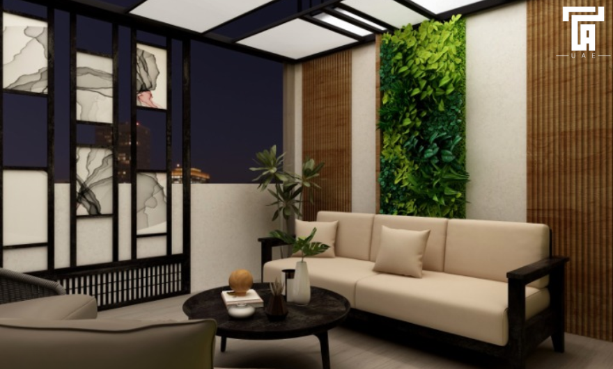 The terrace garden designer home design aims for environmental harmony by integrating green spaces that mitigate urban heat island effects, improve air quality, and offer residents a serene retreat amidst urban surroundings.